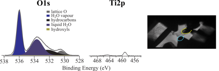Electrochemical processes take place at the electrode-electrolyte interface. To fully understand electrocatalysts and battery electrodes, it is essential to characterise this interface during electrochemical reactions. However, as the interface is buried by the solid electrode on one side and the electrolyte on the other, it is a major technical challenge to study this critical interface. Our group are currently developing novel and cutting edge methodologies using our Near-Ambient Pressure XPS system to study the electrode-electrolyte interface in-situ – based on establishing an ultrathin wetting layer over the analysis area, through which the interface can be measured.